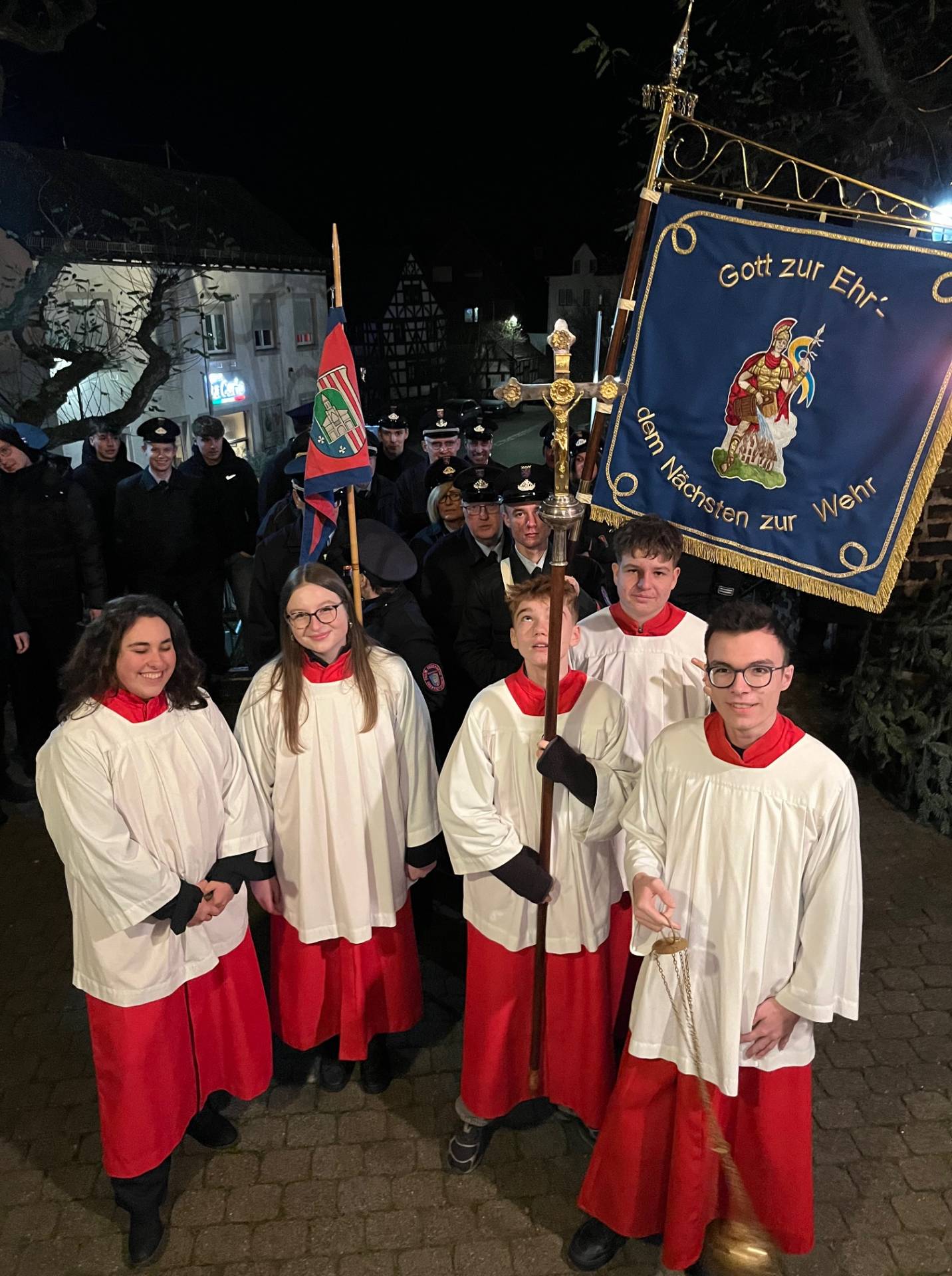 Zunächst fand in der Kirche St. Ägidius ein Gottesdienst statt. Pfarrer Stephan Gras lobte das ehrenamtliche Engagement der Einsatzkräfte, die Tag und Nacht die Sicherheit der Bevölkerung sicherstellten würden. Mitglieder der Jugendfeuerwehr und der Einsatzabteilung gestalteten den feierlichen Gottesdienst als Messdiener mit.
