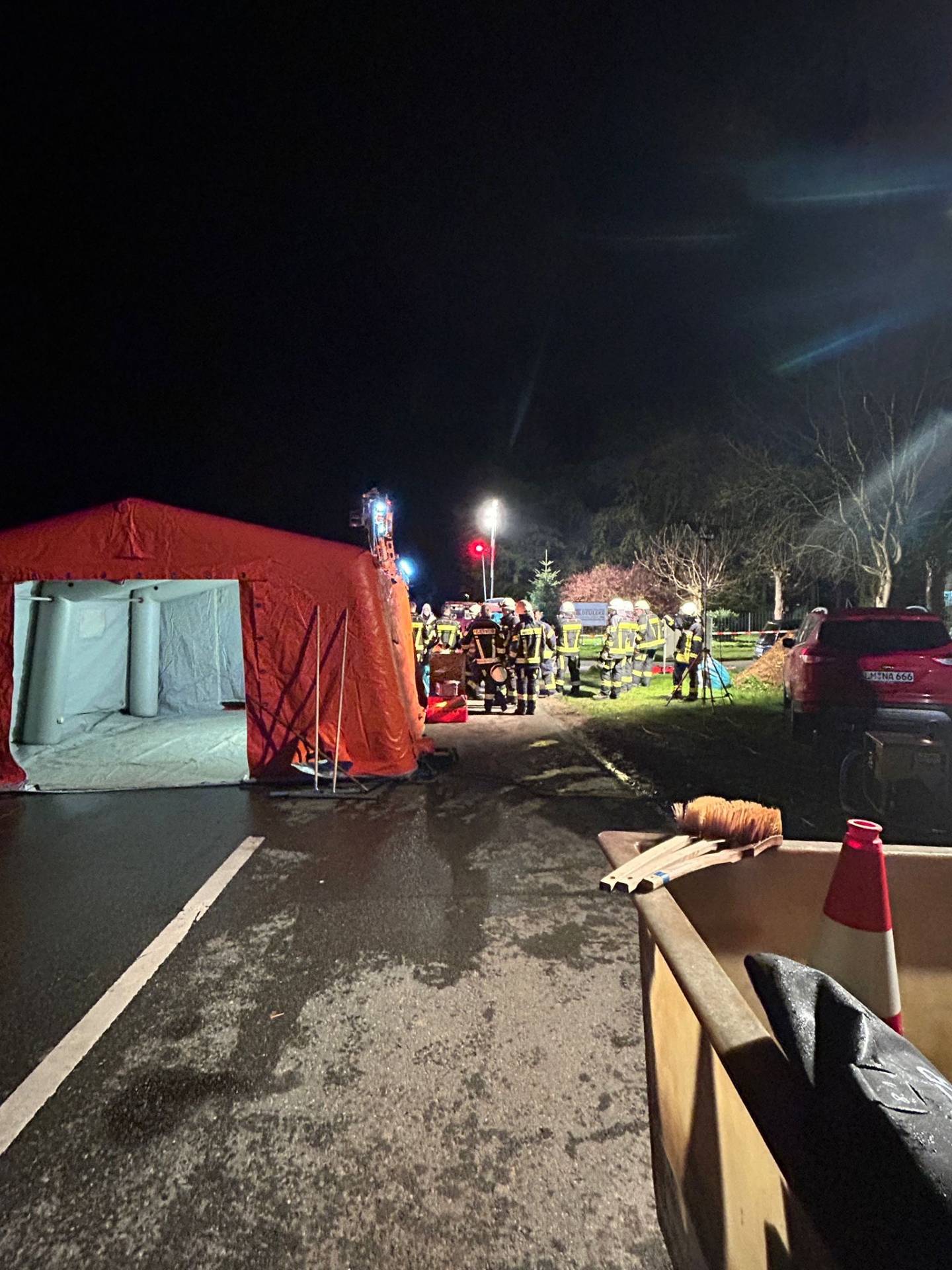 Die Einsatzkräfte des Dekon-Zuges Beselich-Runkel, wurden zu einem schweren Arbeitsunfall nach Runkel alarmiert. Bereits die Alarmierung „Massenfall von Verletzten“ verdeutlichte die Dringlichkeit des Einsatzes. Die Einheit des Dekon-Zuges Beselich begab sich somit umgehend zur Einsatzstelle in Runkel. Vor Ort waren bereits unzählige Feuerwehren, der Rettungsdienst sowie weiteren Einheiten im Großeinsatz. Aufgabe des Dekon-Zuges Beselich-Runkel war es, die Dekontamination von eingesetzten Einsatzkräften und Material sicherzustellen. Dafür wurde an der Einsatzstelle eine entsprechende Dekon-Strecke eingerichtet und betrieben. Der umfangreiche Einsatz dauerte bis tief in die Nacht. Die Zusammenarbeit der vielen Einsatzkräfte klappte hervorragend.